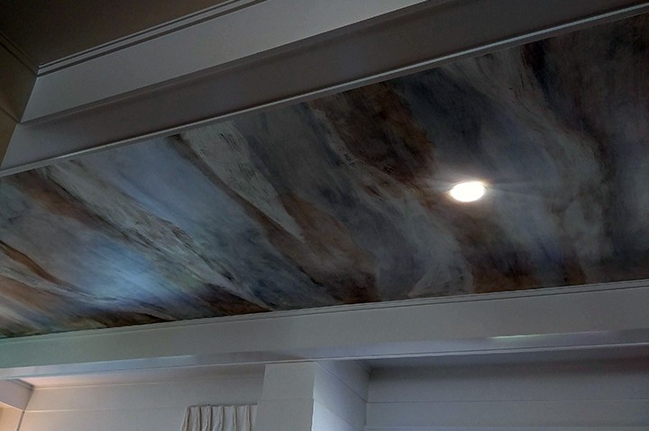 When I am showing homes, many people say that they do not want textured ceilings. I suppose the traditional brush texture ceilings look dated and people prefer a flat finish drywall ceiling. So, imagine my surprise when I looked up and saw a few knock down brush/ trowel textures on ceilings. The textures were not in the main living spaces – those were still flat painted surfaces – but ceiling surfaces don’t have to be flat to be gorgeous and look high end.